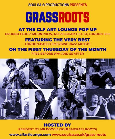Grass Roots currently takes place at The CLF Art Lounge's Pop Up in Peckham, South London. The venue was voted one of London's six best jazz bars by The Spectator in November 2022.