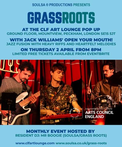 Grass Roots is a monthly live music event which empowers and celebrates young and emerging London-based jazz artists. Grass Roots will also be a one-day jazz festival on Saturday 23 May 2026. Both the monthly event and the festival are supported using public funding by Arts Council England.