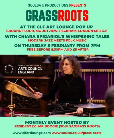 Grass Roots is a monthly live music event which empowers and celebrates young and emerging London-based jazz artists. Grass Roots will also be a free one-day jazz festival on Saturday 23 May 2026. More details about that to follow shortly. Both the monthly event and the festival are supported using public funding by Arts Council England.